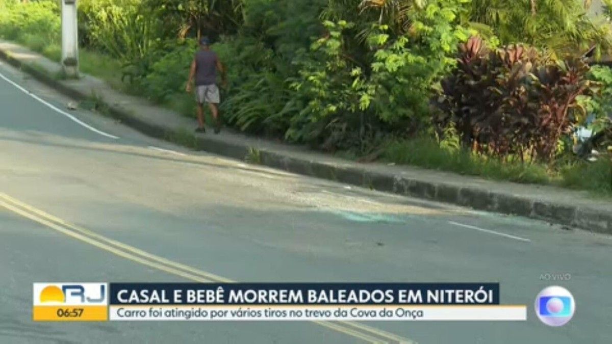 Um casal e um bebê de cerca de 1 ano morreram baleados após o carro onde estavam ter sido alvo de vários disparos no fim da noite deste domingo (17) em Niterói, na Região Metropolitana do RJ.