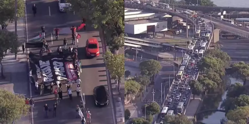 De acordo com informações do Centro de Operações Rio, o ato começou pouco antes das 7h, quando manifestantes passaram a ocupar duas faixas da pista central no sentido Cidade Nova, na altura da Rodoviária do Rio. Até por volta das 7h30, apenas uma faixa seguia liberada para a circulação de veículos, o que contribuiu para a retenção no tráfego.