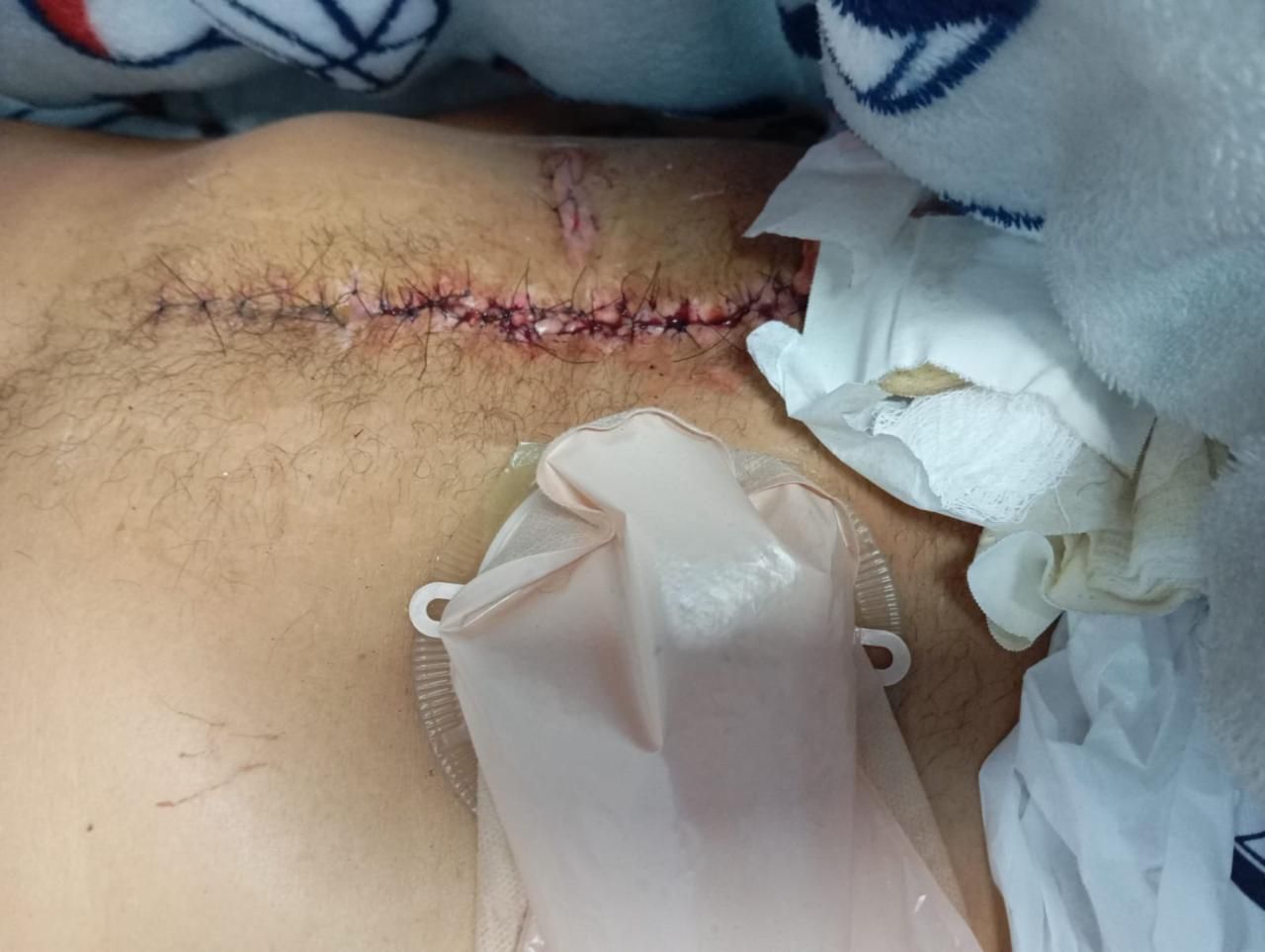 Segundo o relato, após a primeira cirurgia, o paciente teria desenvolvido uma infecção que comprometeu o procedimento inicial, exigindo uma nova operação para reposicionamento do estoma. Posteriormente, foi realizada uma terceira cirurgia para retirada de um tumor intestinal.