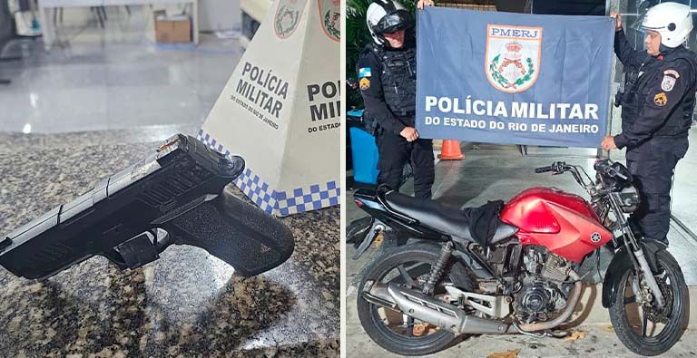 De acordo com a apuração, policiais da motopatrulha do 8º BPM realizavam patrulhamento quando suspeitaram de dois indivíduos em uma motocicleta, ambos utilizando capacete e com a placa do veículo encoberta por uma sacola, na rotatória entre as ruas Álvaro Tâmega e Pero de Góis.